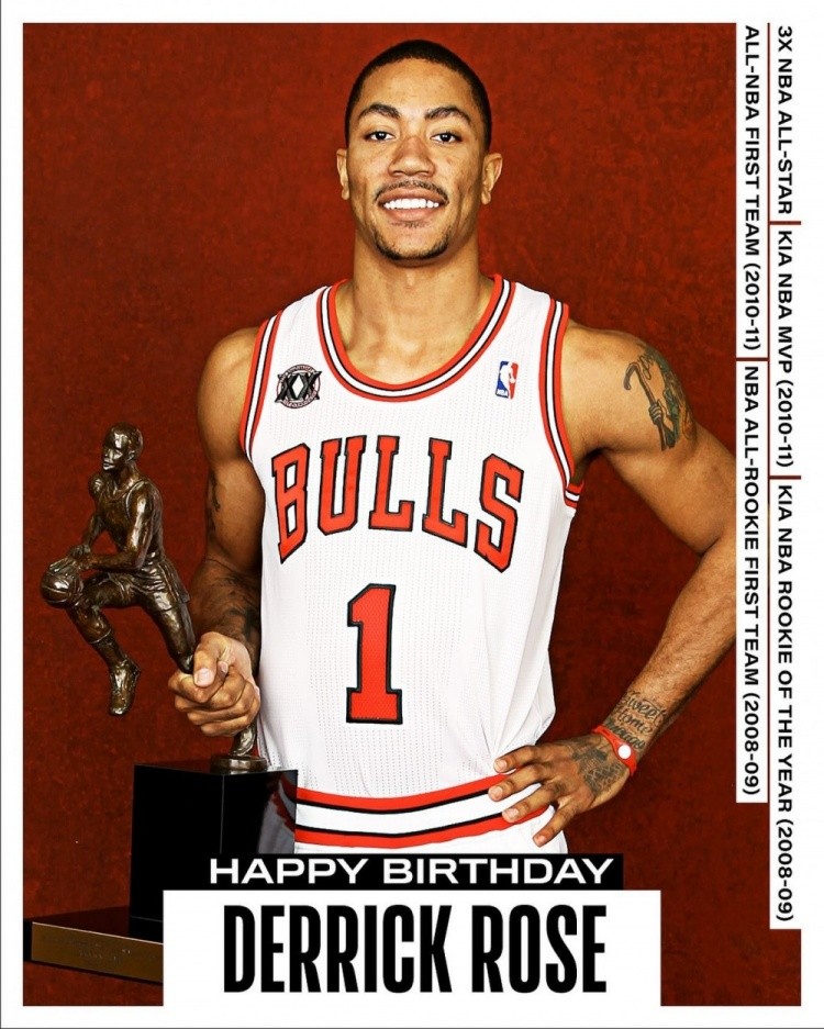 10月4日讯 今天是NBA名宿德里克-罗斯的37岁生日,让我们一起祝愿他生日快乐。