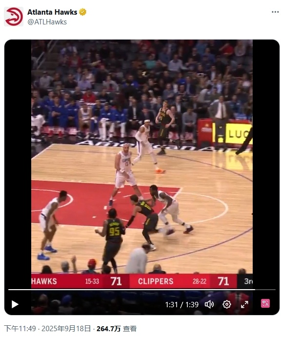 老鹰官方今天默默发布了一个特雷-杨对位贝弗利的集锦,为自家球星特雷-杨撑腰。